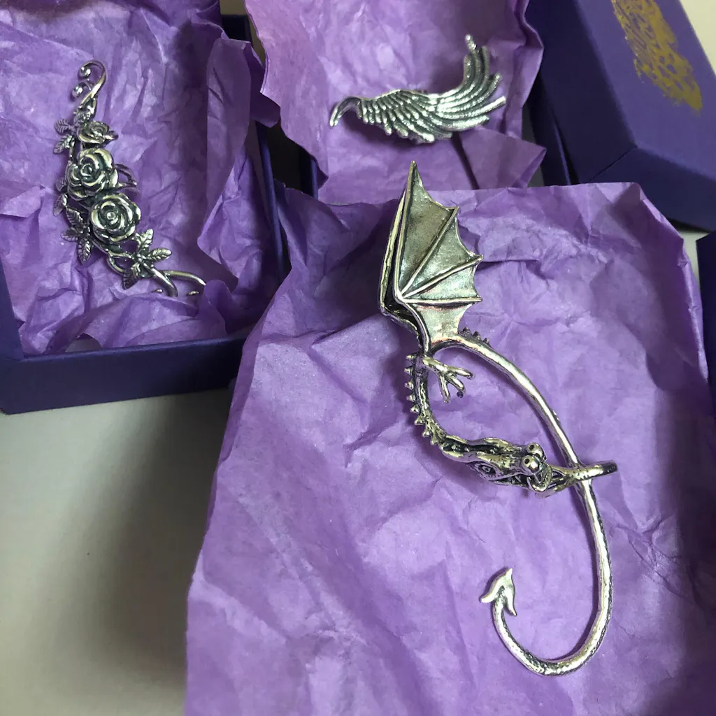Etsy customer Arrived quicker than I expected, amazing craftsmanship and detail. A bit big for my ear but it stays on. The actual product has more sheen than it looks in the pictures, which is a huge plus!