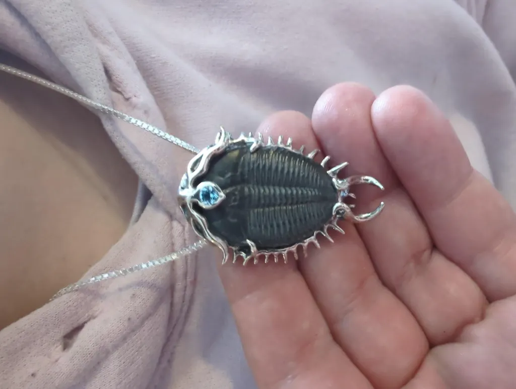 Gabi Collard Got this for my mum for Christmas. She loves big jewelry and she loves this necklace! The fossil is a good size, the silver is perfectly fit, the stone looks gorgeous! Got fast shipping as we wanted to make sure it would come in time. It was faster than expected! Thanks so much!