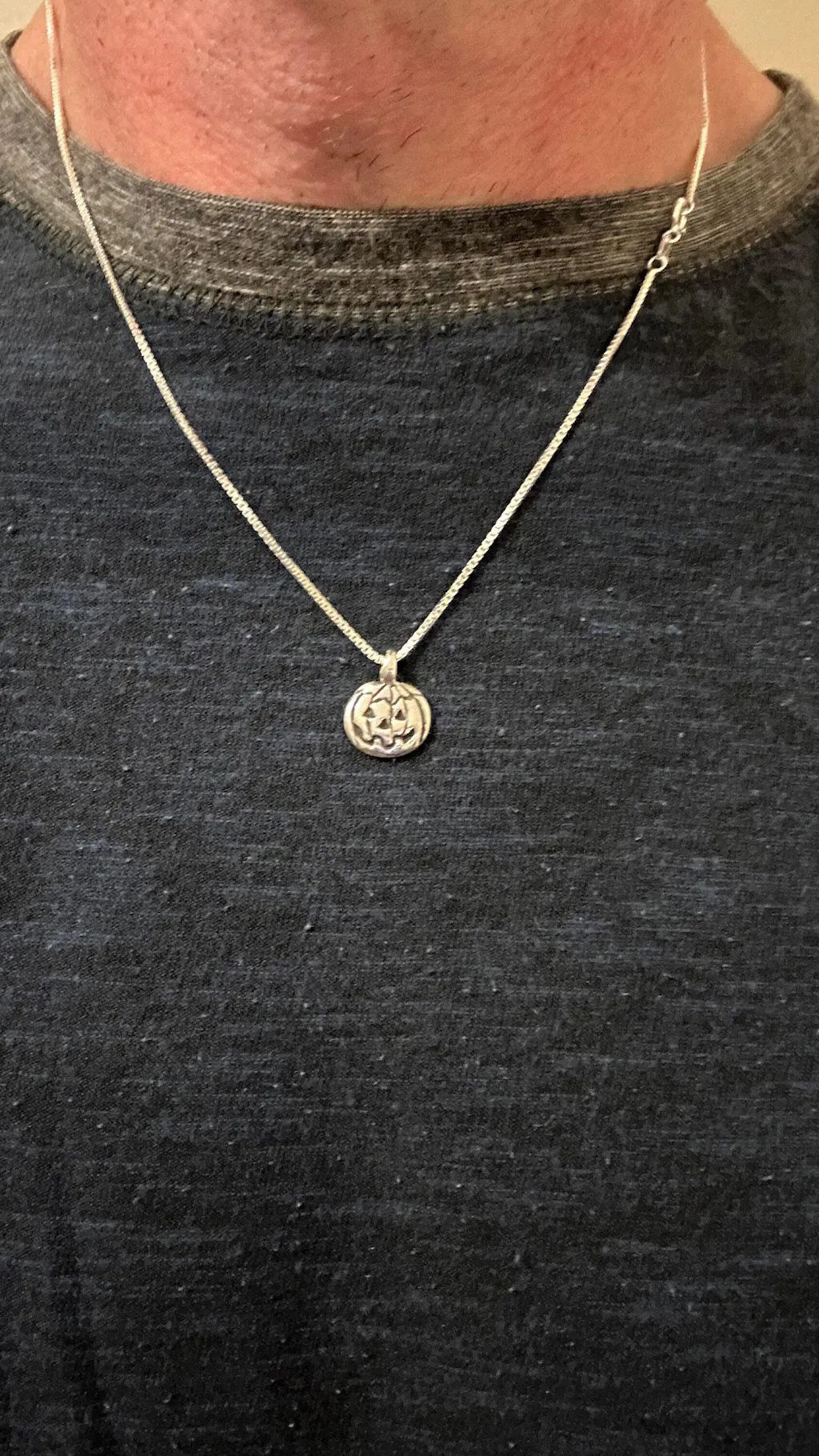 Flat Jack O'Lantern Pumpkin Charm - Silver