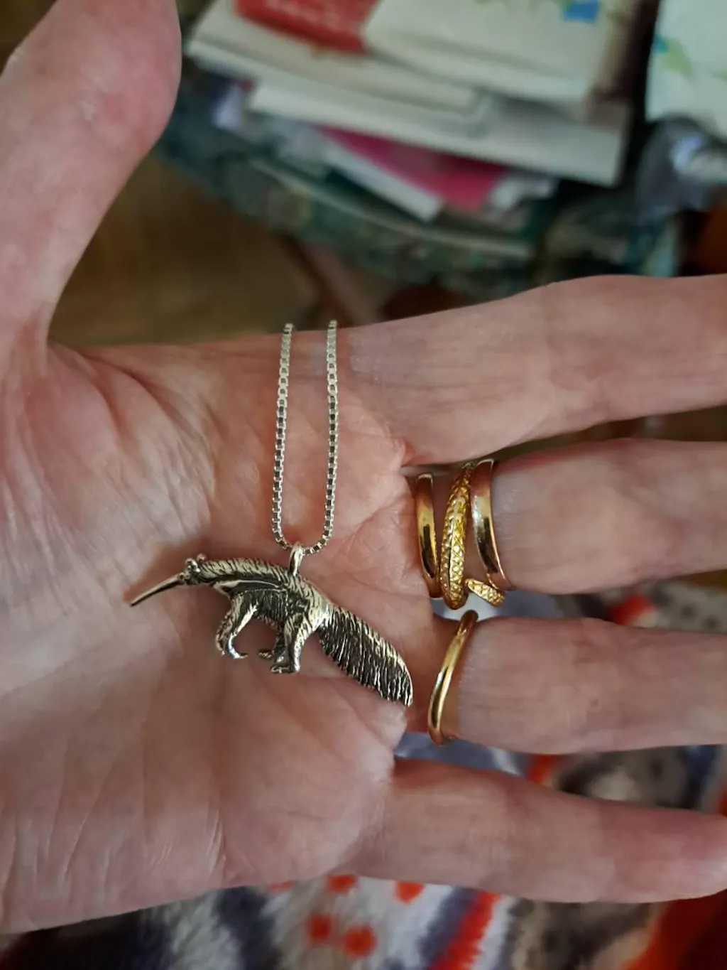 This detailed Anteater Charm is cast in sterling silver. It is 1-1/2" long and 1/2" high excluding the bail for the chain and completely three dimensional. Ants Beware!