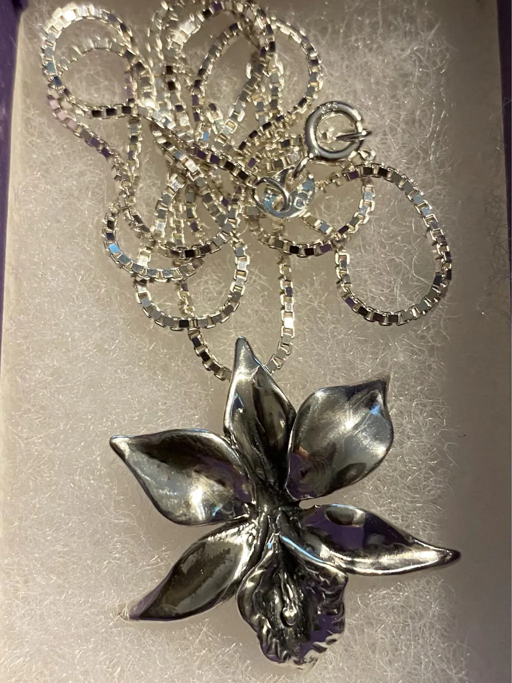 Capture a bit of island paradise while wearing this beautiful sterling silver Orchid Pendant. This detailed Orchid is 1" (25 mm) in diameter.